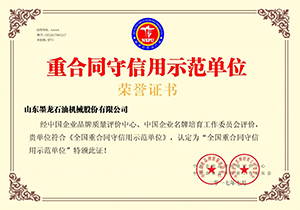 此次榮獲“重合同守信用示範單位”榮譽稱號是公司以誠信求生存的重大體現(xiàn),為進壹步增強公司的市場競爭力註入了壹針強心劑。堅定了山東墨龍繼續(xù)在石油機械領(lǐng)域做大做強的信心,通過進壹步的企業(yè)改革升級、砥礪前行,打牢石油機械持續(xù)穩(wěn)定發(fā)展的根基,為石油機械行業(yè)的誠信、健康發(fā)展貢獻綿薄之力。