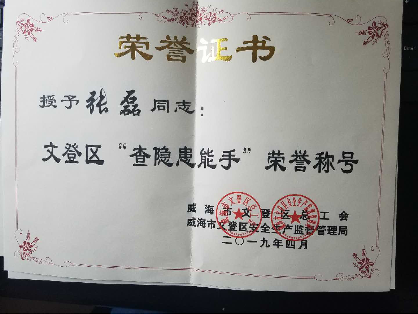 2019年4月28日上午,由威海市文登區(qū)總工會(huì)、威海市文登區(qū)安全生產(chǎn)監(jiān)督管理局聯(lián)合主辦的“文登區(qū)查保促安康競賽”、“文登區(qū)活力工會(huì)、文登區(qū)優(yōu)秀職工”頒獎(jiǎng)典禮在文登區(qū)總工會(huì)盛大舉行,威海寶隆分別榮獲文登區(qū)“查保促安康”競賽先進(jìn)單位、文登區(qū)“活力基礎(chǔ)工會(huì)”稱號(hào),鑄鍛廠廠長向科陽榮獲文登區(qū)“優(yōu)秀職工”稱號(hào),安全員劉思誠、張磊、胡安宏榮獲文登區(qū)“查隱患能手”榮譽(yù)稱號(hào)。