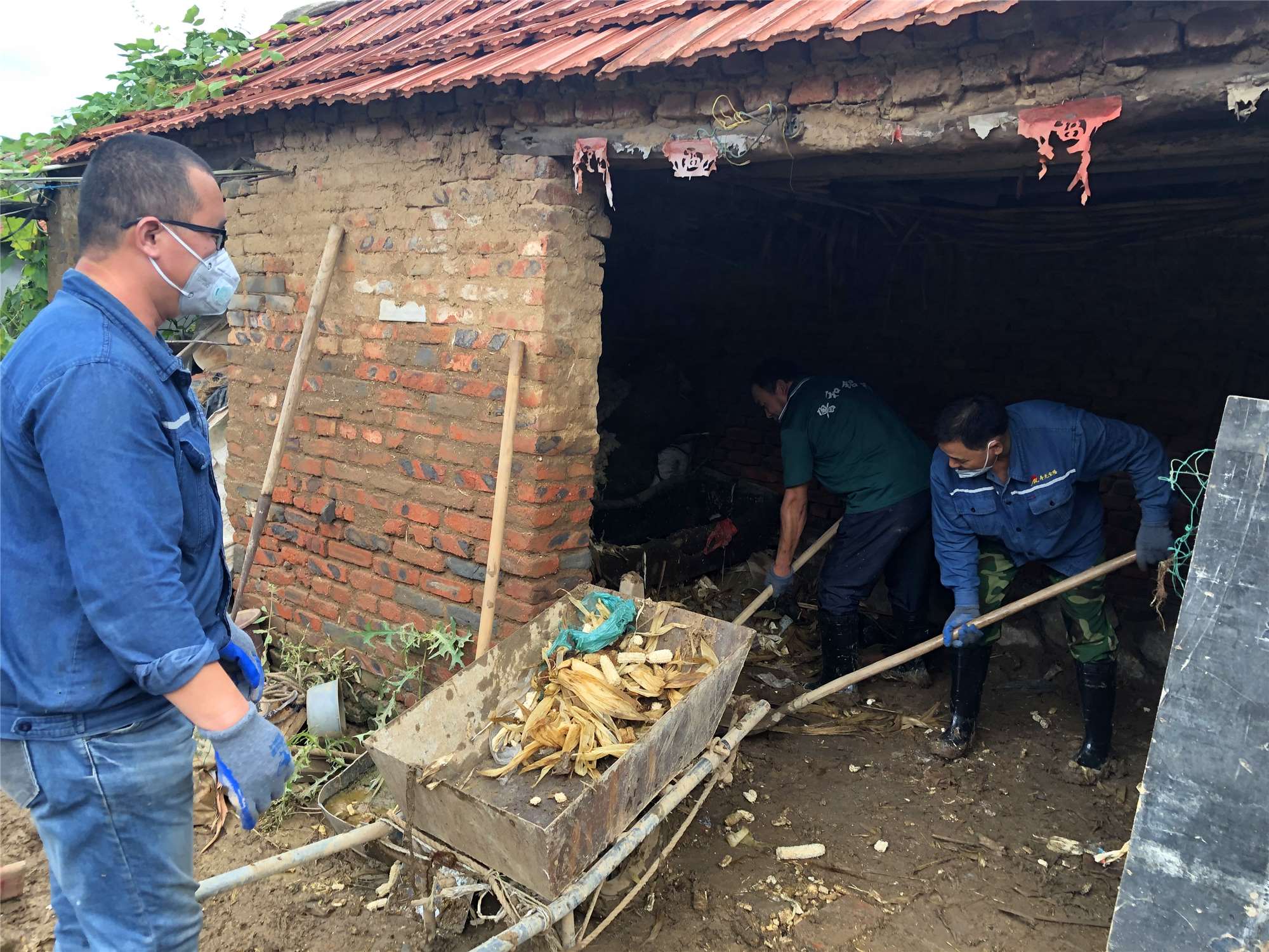 在到達(dá)營里鎮(zhèn)南王家莊子村后,我們發(fā)現(xiàn)洪水過后,村內(nèi)大街小巷淤泥沉積,群眾出行特別困難,村內(nèi)環(huán)境衛(wèi)生堪憂,日常生產(chǎn)生活無法正常開展,受災(zāi)情況嚴(yán)重。