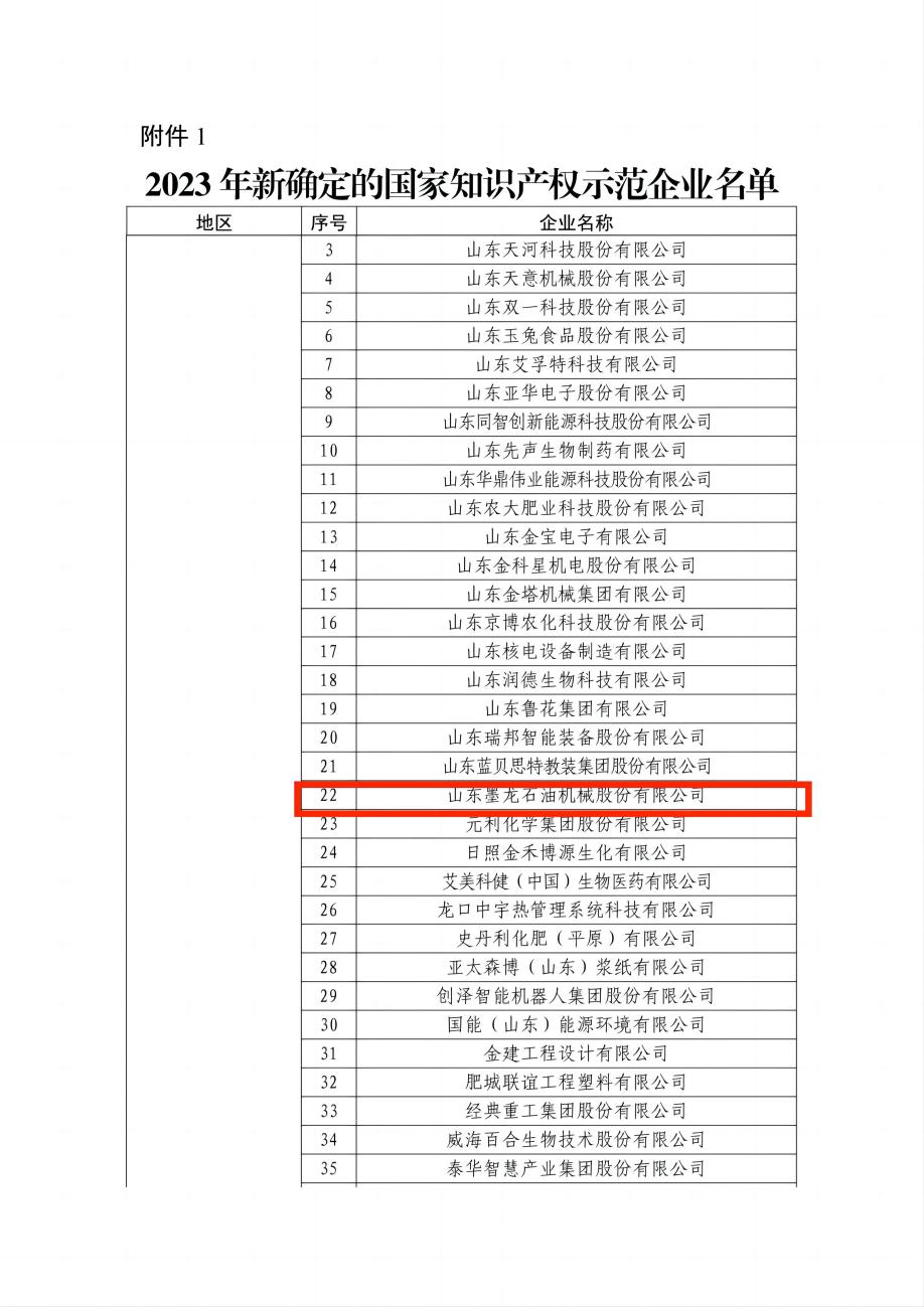 2023年11月29日,國家知識產(chǎn)權(quán)局公布了2023年新一批及通過復(fù)核的國家知識產(chǎn)權(quán)示范企業(yè)和優(yōu)勢企業(yè)名單,山東墨龍石油機(jī)械股份有限公司(以下簡稱“山東墨龍”)成功入選,成為壽光市首家國家知識產(chǎn)權(quán)示范企業(yè)。